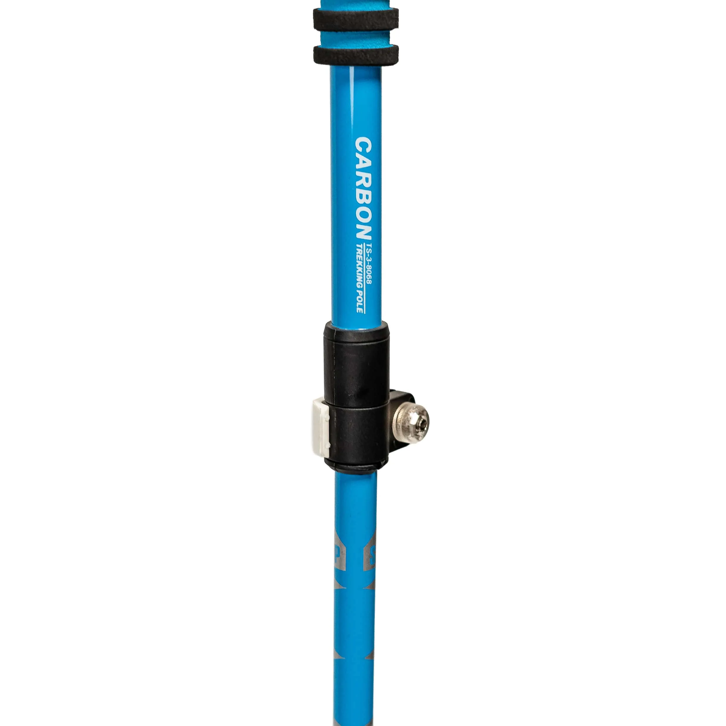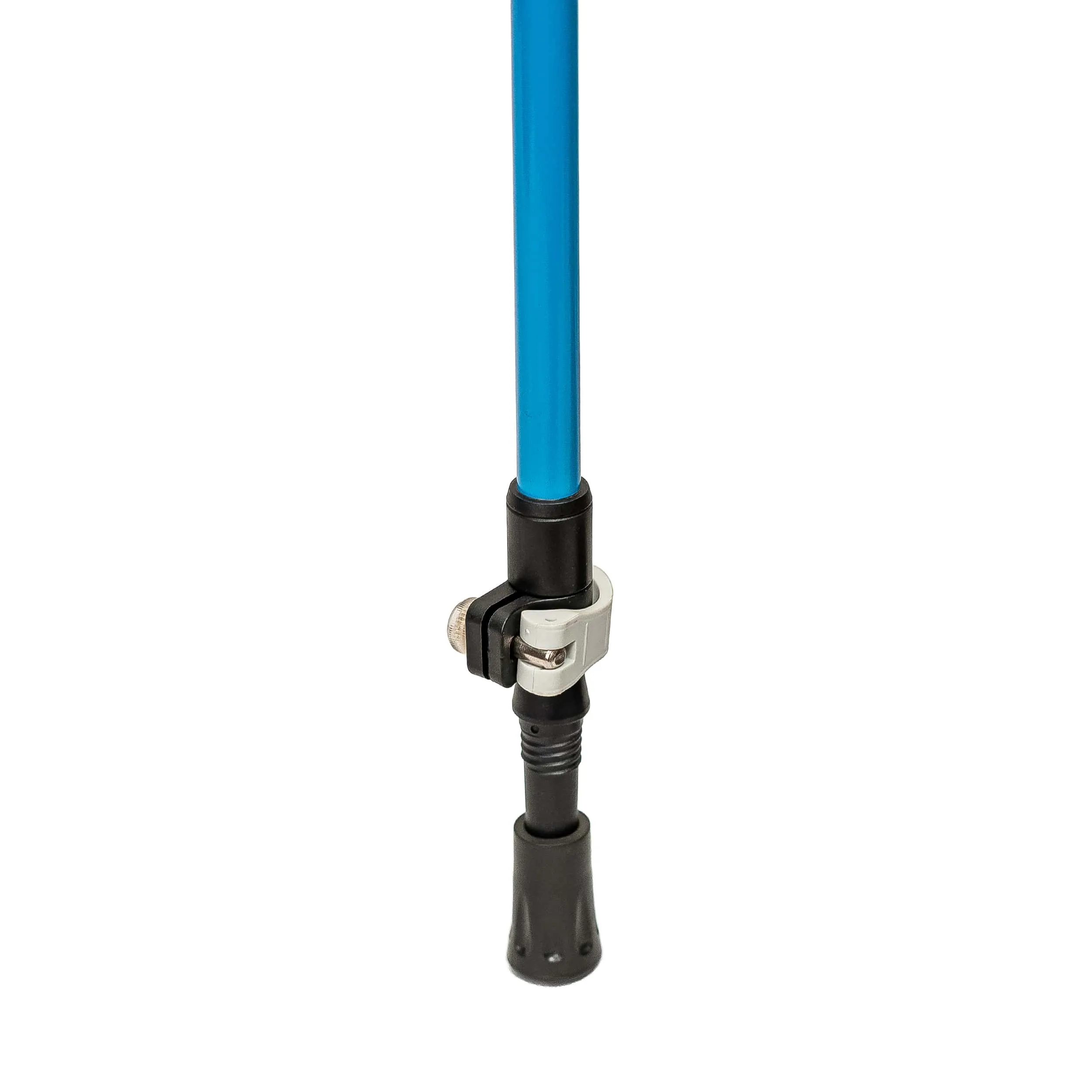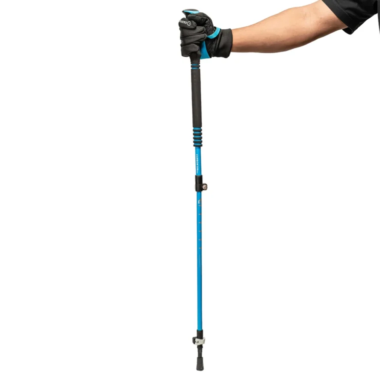 Designed for high-performance trekking, this blue anti-shock pole minimizes joint stress while maximizing balance on technical trails. The lightweight yet robust construction, adjustable height mechanism, and ergonomic handle enhance comfort over long distances.
