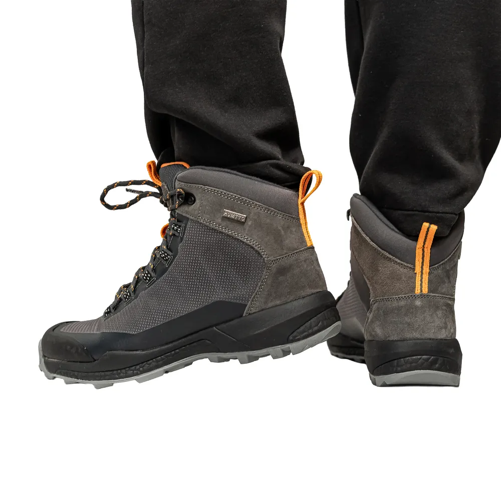 Engineered for rugged terrain, these grey Humtto men’s hiking boots deliver superior ankle support, protective construction, and dependable grip. Their cushioned midsole enhances comfort over long distances, while the robust exterior withstands harsh trail conditions.